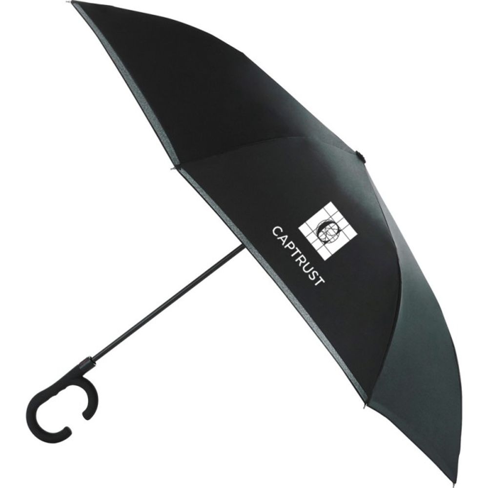 Stay dry during and after the rain with this 48" Manual Inversion Umbrella. With the inversion style this keeps the water contained and off yourself when closed! Made with an RPET canopy, full fiberglass frame and metal shaft this sturdy umbrella can do it all. Wind rated up to 35mph. 2.00" D x 2.00" W x 29.50" H.