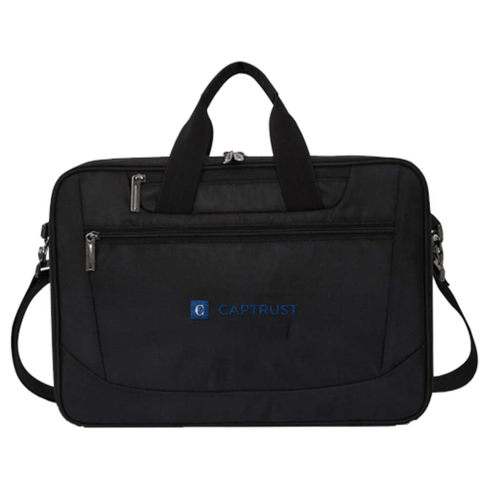 The ultimate business bag for today's road warrior. The front gusset includes a multi-function organizer with RFID card pockets, zippered mesh pocket, mesh pocket for storing a smartphone, and a keychain clip for securing keys or personal items. Zip-out support strap and side buckle straps provide stability while on the road. Top zippered pocket stores support straps when not in use. Work surface with anti-slip silicone ideal for working on the go. Interior scratch-resistant pocket sized to fit up to a 10” tablet. Accordion-style file pockets.